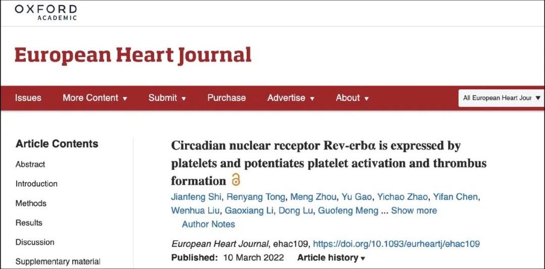 近日,上海交通大学医学院附属仁济医院心内科卜军团队在国际著名期刊《欧洲心脏杂志》(European Heart Journal,影响因子IF=30)上发表研究论文,发现了临床血栓性事件清晨高发的昼夜节律机制,为临床血栓性事件的发生提供了新的认知和干预靶点。